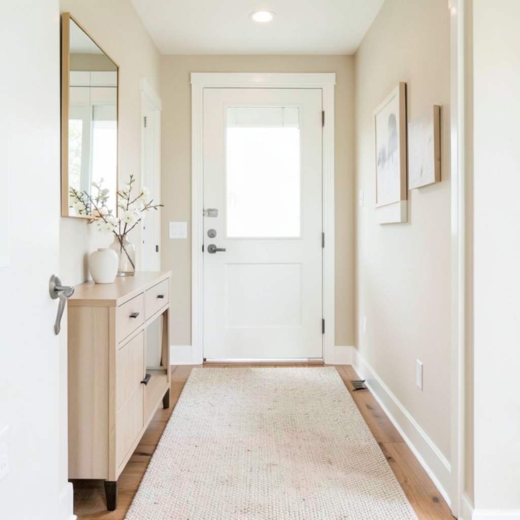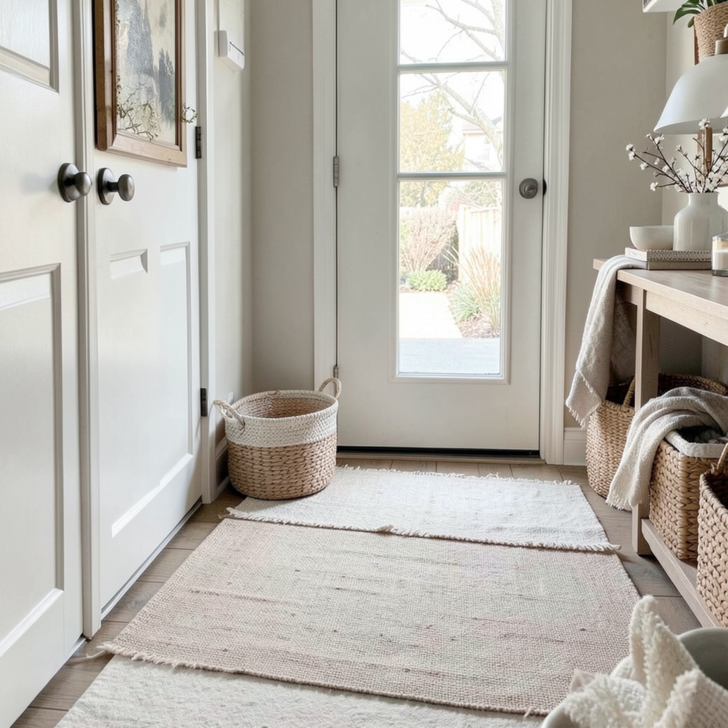 A low-pile neutral runner rug can make even narrow entryways feel brighter while adding warmth underfoot.