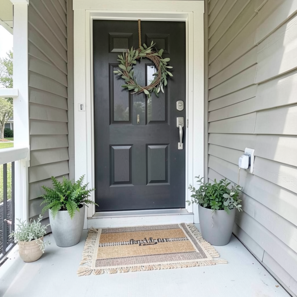 When the exterior and entryway share similar tones and materials, the home feels visually connected.