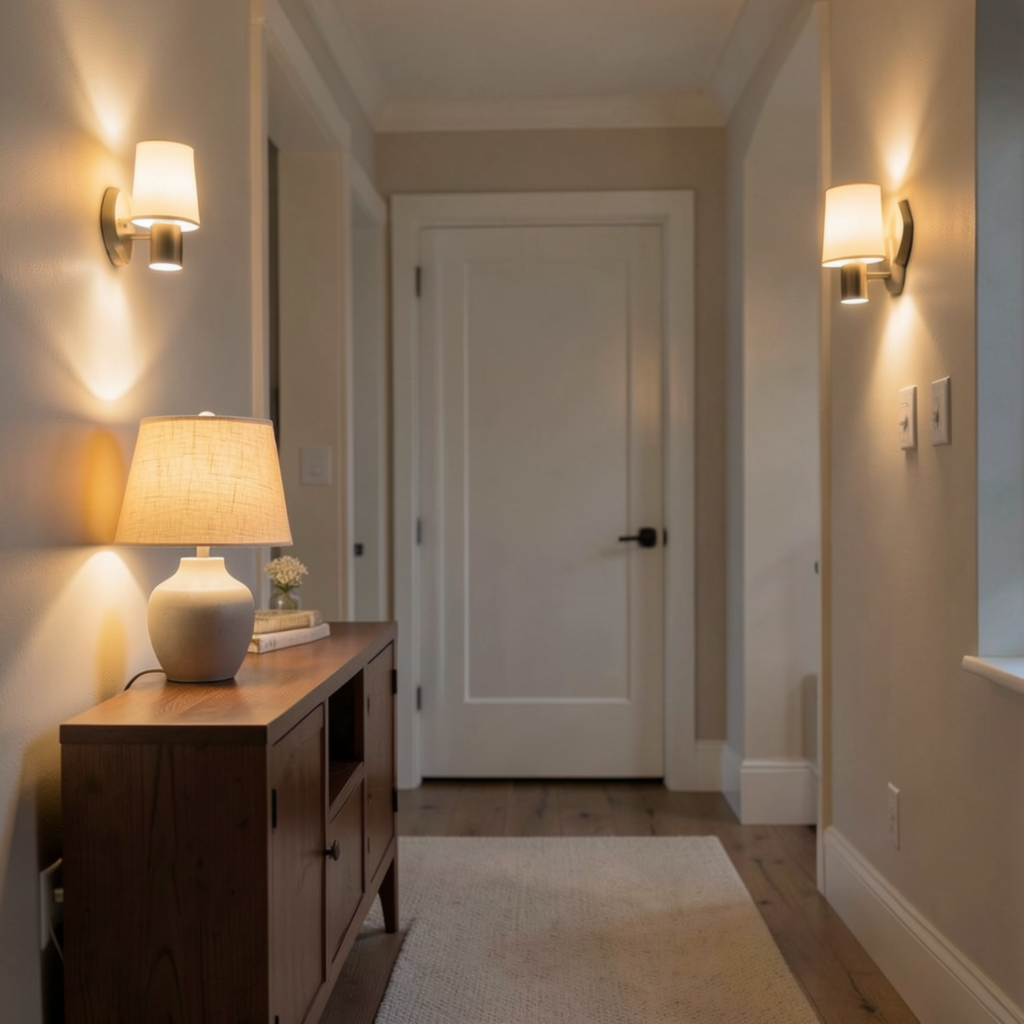 Lighting shapes how welcoming the entryway feels, especially in the evening.